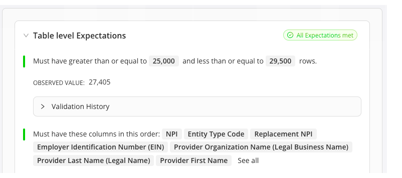 Expectations offer deeper insights than schema validations, and they’re more resilient to changes in business and technical requirements. With Expectations, you can intuitively create data quality tests with unparalleled flexibility and control and make them accessible to technical and nontechnical users alike.